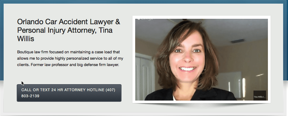 Tina Willis graduated 2nd in her class from Florida State University College of Law. She has worked as a big firm defense attorney and as a law professor, not to mention the many awards under her belt. She now focuses her time as a personal injury attorney. She is using InjuryAttorneyFlorida.com as her domain to her business site and likes to refer to herself as an Orlando car & truck accident attorney.