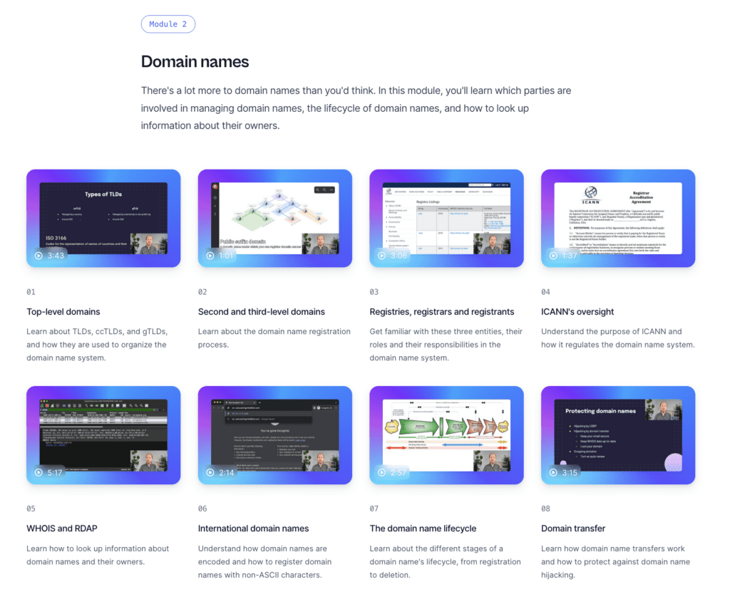 The course teaches developers and other IT-minded people how the DNS is structured, how it works, how it is secured, and how they can investigate and fix DNS issues. It also has a full module on the domain names ecosystem.