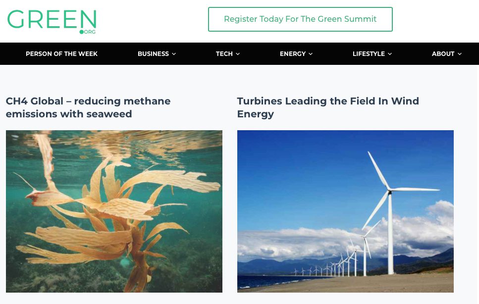 Green.org - television show, podcast, social media, and news platform that highlights climate change scientists, renewable energy experts, and clean tech entrepreneurs by giving them a voice in the mainstream media.